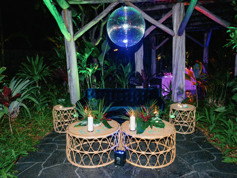 Featured Rentals: Everything, lol, of course the beches and the boardwak and ceremony platform, as well as pieces for the cocktail hour and reception (coming soon). The mood is Volcanic black accentuated by deep jewel tones of tropical flowers, using authentic lava rock as it's muse.